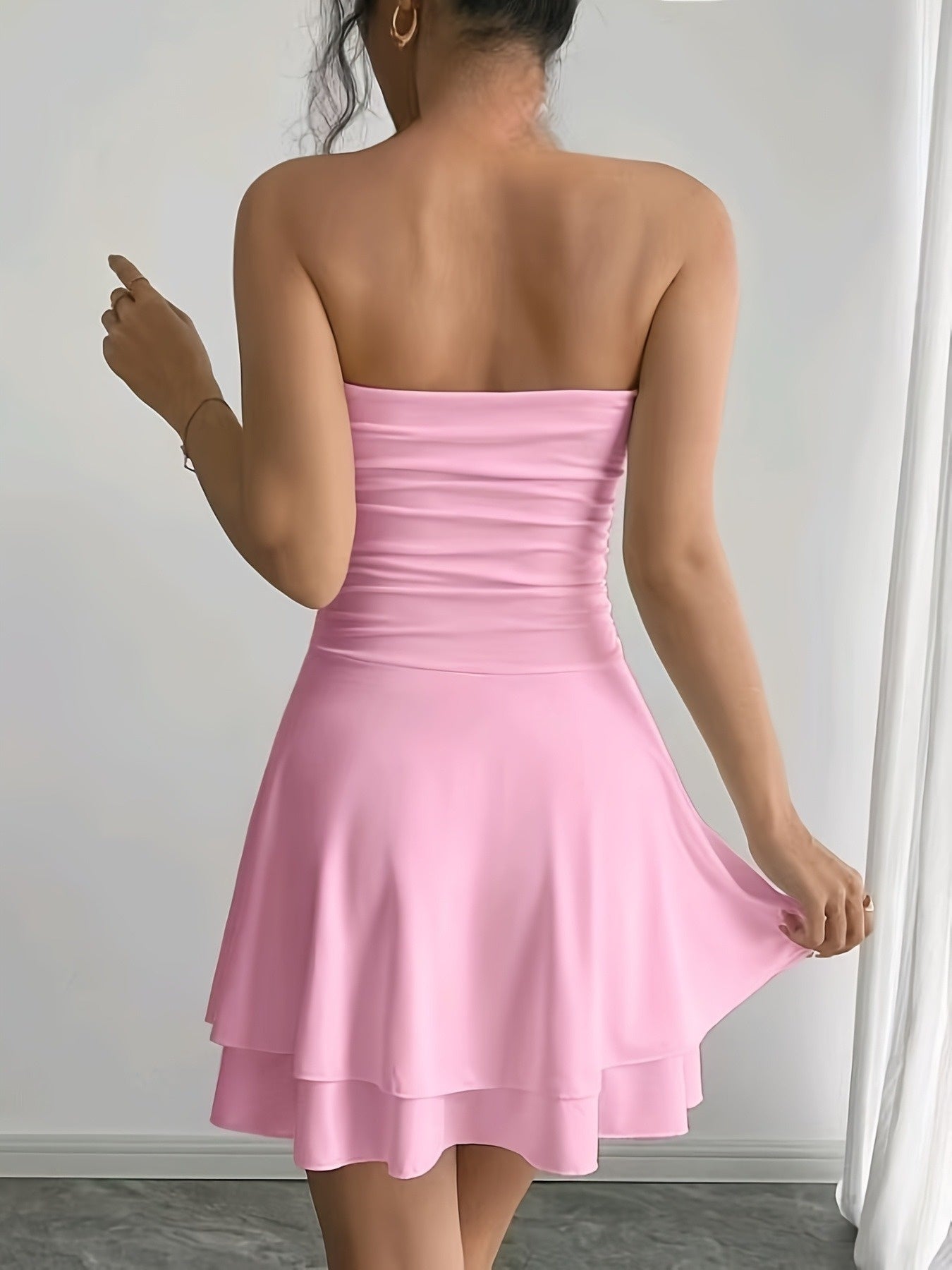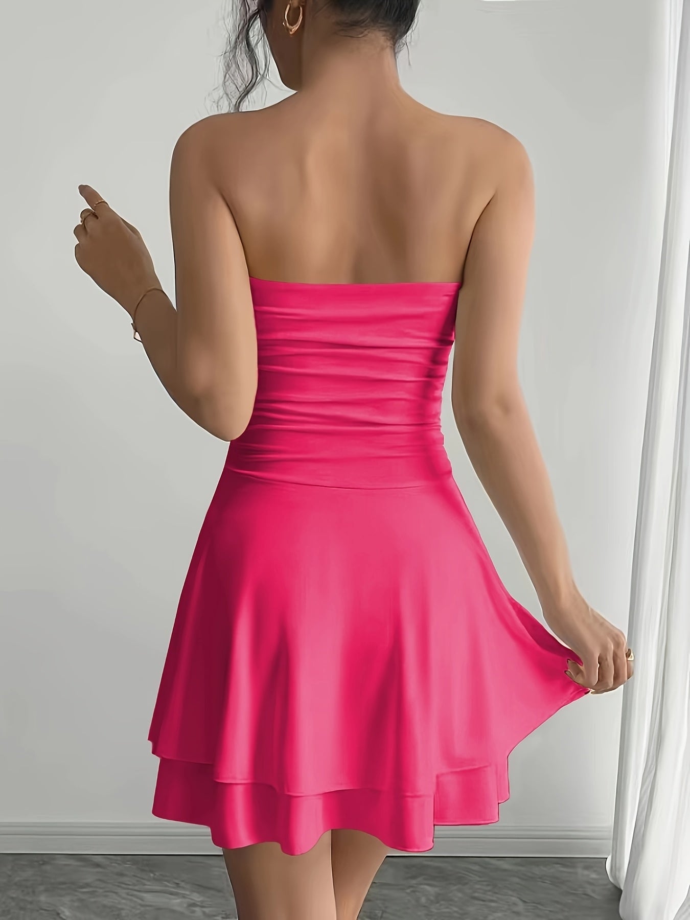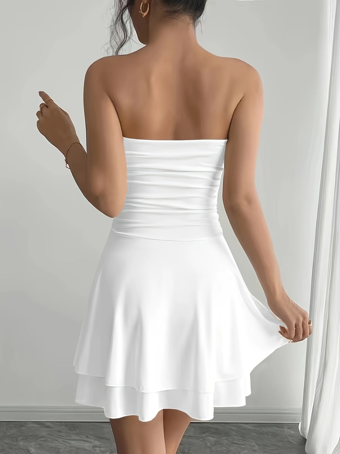 Gemaakt van een rekbaar en ademend materiaal, biedt deze jurk ultiem comfort tijdens de lente en zomer. De elegante rucheszoom voegt een speelse touch toe, waardoor je altijd stralend voor de dag komt.